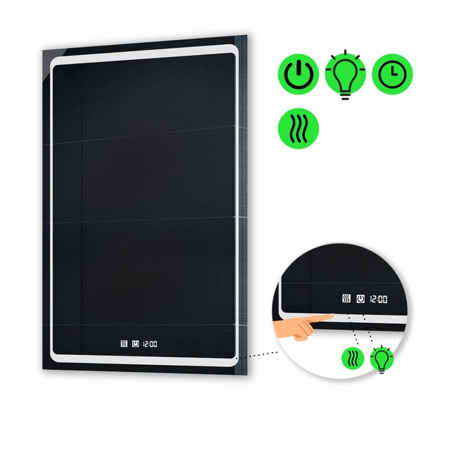 Прямокутне дзеркало з LED підсвіткою 70 на 110 см, з двома сенсорами, годинником та підігрівом, модель Emma La Mir (Emma182)
