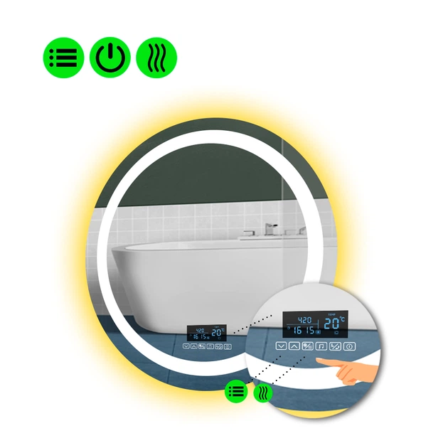 Кругле дзеркало з двома LED підсвітками 70 на 70 см, зі Smart-блоком та підігрівом, модель Amica La Mir (Amica197)