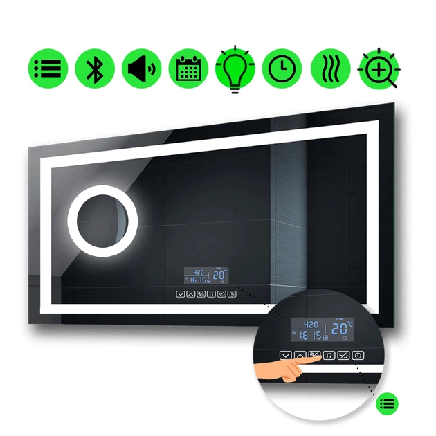 Дзеркало A-5 (150 х 100) з LED-підсвічуванням, годинником та підігрівом