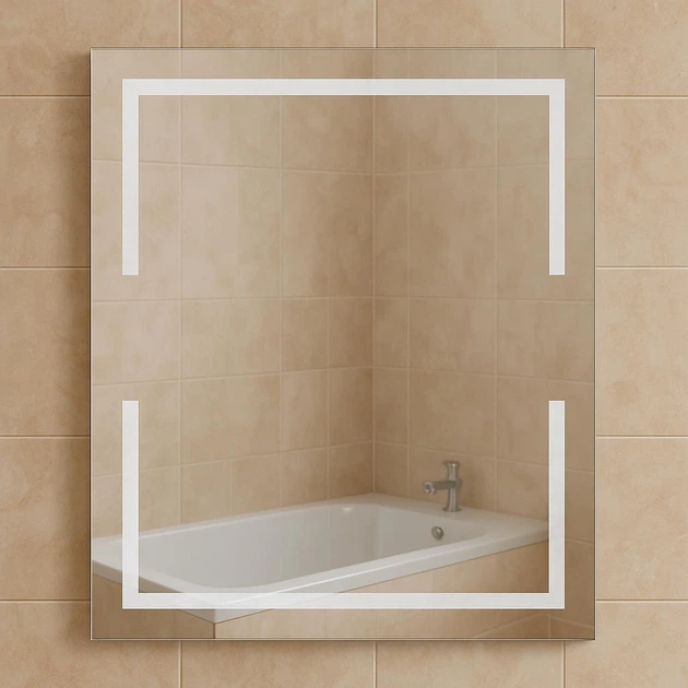 Зеркало біля ванни 60х85 см настінне Скло 3 мм Zerix PRIME MRZ07-600x850-REVERSE прямокутне із закругленими углами (ZX5637)