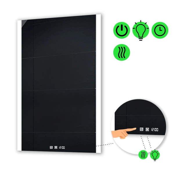 Прямокутне дзеркало з LED підсвіткою 60 на 80 см, з двома сенсорами, годинником та підігрівом, модель Simphony La Mir (Simph