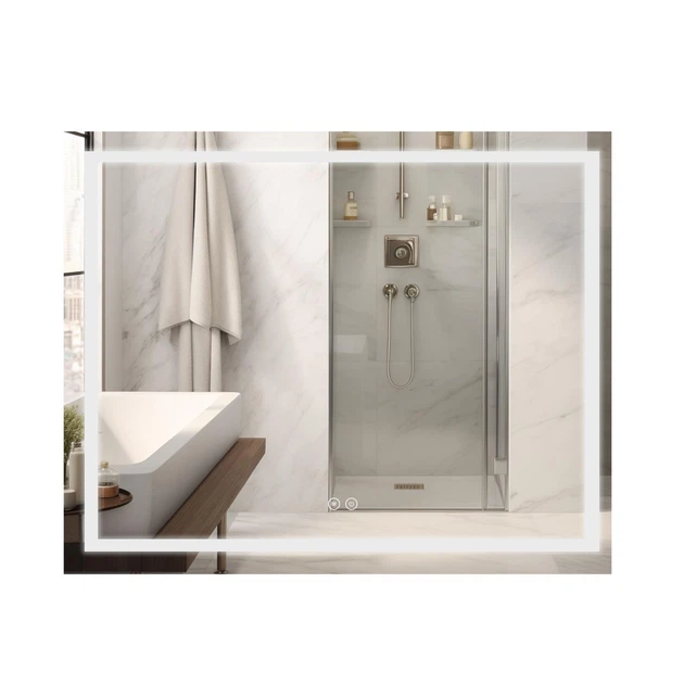 Прямокутне дзеркало з LED підсвіткою 60 на 80 см, з двома сенсорами, годинником та підігрівом, модель Amado La Mir (Amado28)