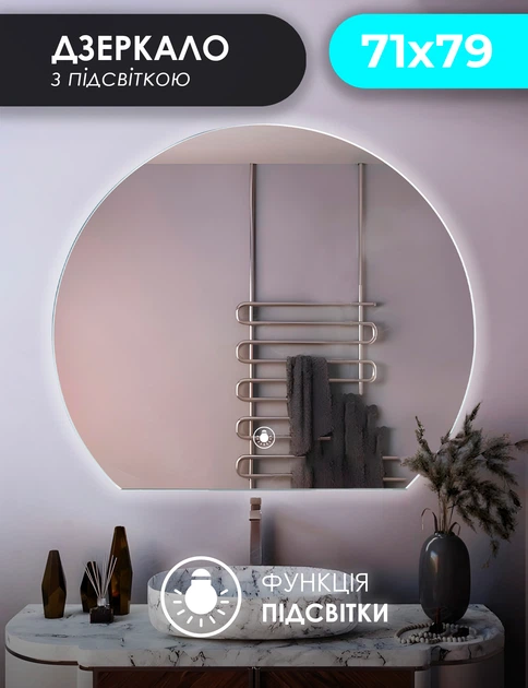 Дзеркало з підсвіткою для ванної кімнати настінне смарт дзеркало LED 79х71см BRS