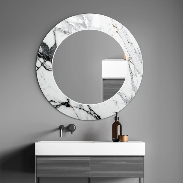 Дзеркало на стіну NovellaPrint з малюнком мармуру, кругле 70см (2024.3)