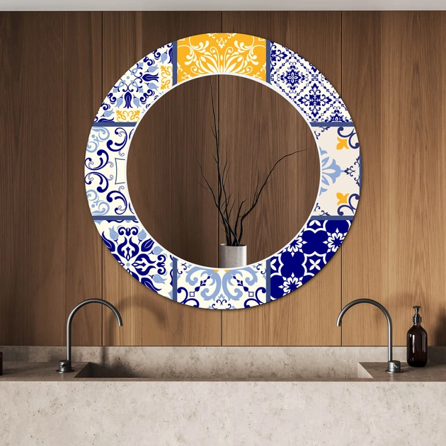 Дзеркало на стіну NovellaPrint з малюнком плитки, кругле 70см (2002.3)