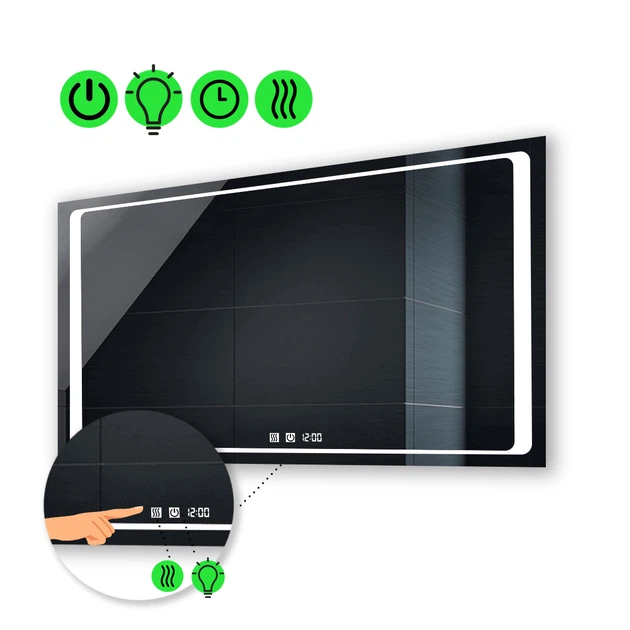 Дзеркало Nero (55 х 55) c LED-підсвічуванням, годинником, підігрівом та лінзою