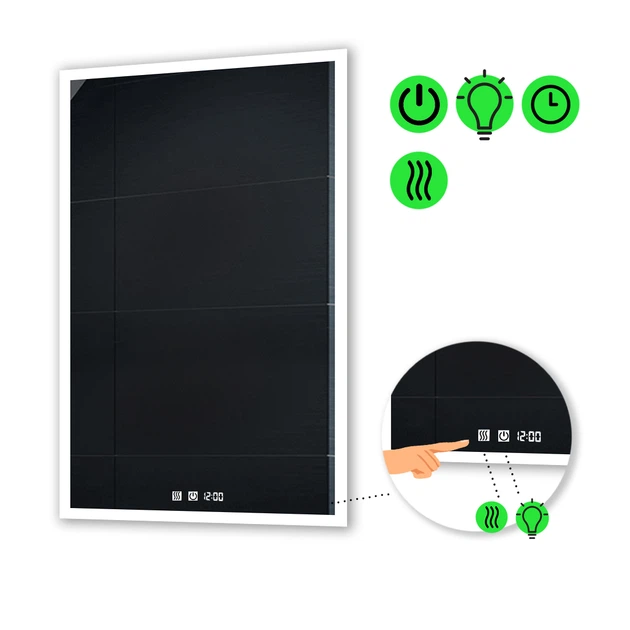 Прямокутне дзеркало з LED підсвіткою 60 на 100 см, з двома сенсорами, годинником та підігрівом, модель Amado La Mir (Amado94