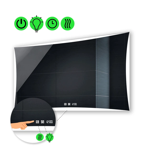 Прямокутне дзеркало з LED підсвіткою 100 на 60 см, з двома сенсорами, годинником та підігрівом, модель Simphony La Mir (Simp