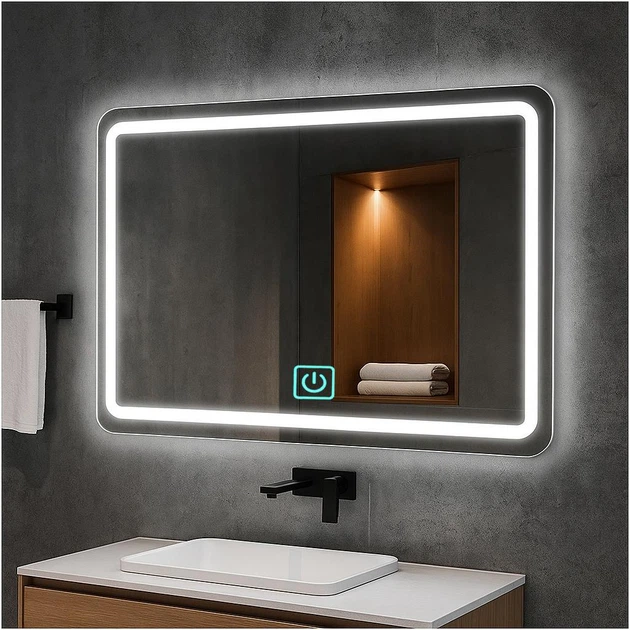 Дзеркало Ekvator LM - 35 (60х80) з LED-підсвічуванням, для вітальні, спальні, ванної кімнати з сенсорним вимикачем
