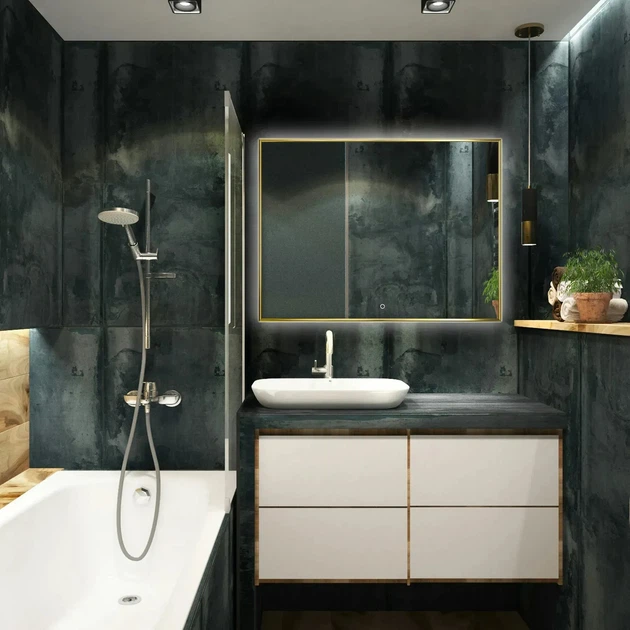 Дзеркало з LED-підсвічуванням Art-com 500х700 мм з сенсорною кнопкою золотисте (AP D gold 500x700 mm)