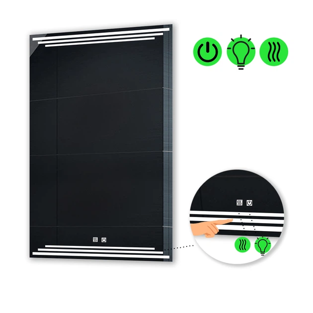 Прямокутне дзеркало з LED підсвіткою 70 на 60 см, з двома сенсорами та підігрівом, модель Emma La Mir (Emmag12)