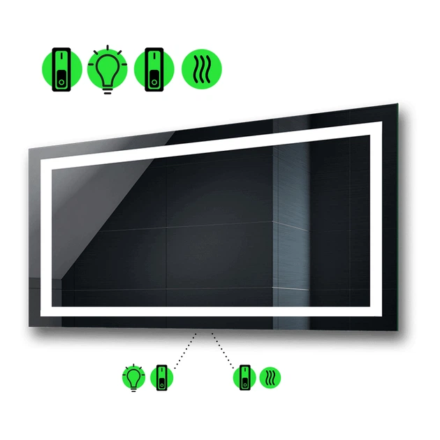 Прямокутне дзеркало з LED підсвіткою 80 на 60 см, з підігрівом та двома Механічними вимикачами, модель Karnet La Mir (karnet