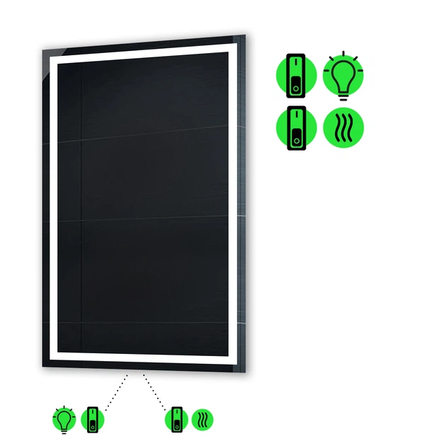 Прямокутне дзеркало з LED підсвіткою 60 на 80 см, з підігрівом та двома Механічними вимикачами, модель Karnet La Mir (karnet