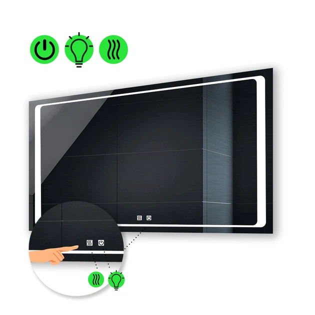 Прямокутне дзеркало з LED підсвіткою 80 на 60 см, з двома сенсорами та підігрівом, модель Karnet La Mir (karnetg34)