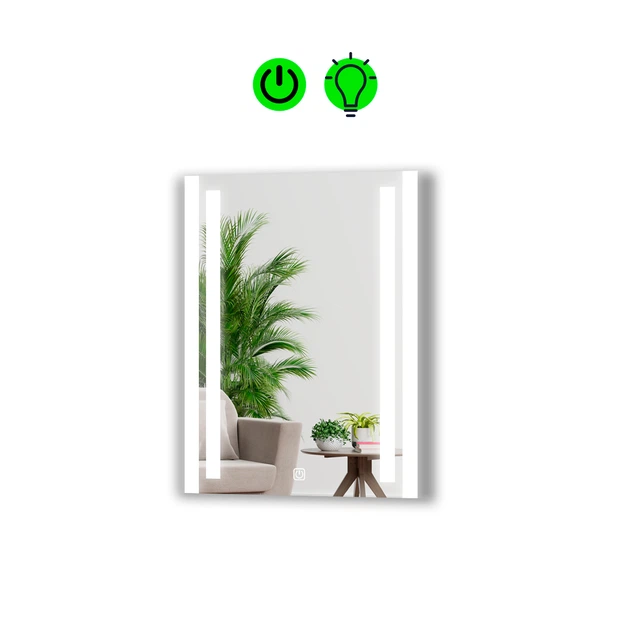 Дзеркало з подвійною LED підсвіткою прямокутне 60 на 80 см - сенсорною кнопкою управління, La Mir модель Mirta