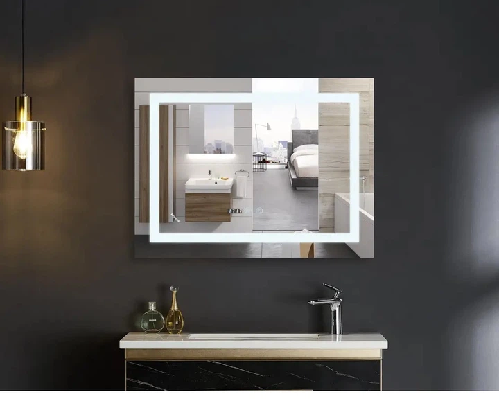 Зеркало 100x80 см із LED Touch Сенсором Діммером Фасадним підсвічуванням Антизапотівне Mixxus Warm MR02-100x80 Скло 5 мм із