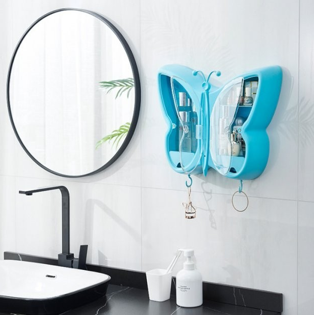 Настінний органайзер для косметики у ванну кімнату пластиковий у формі Метелика органайзер для косметики Блакитний (D-201909
