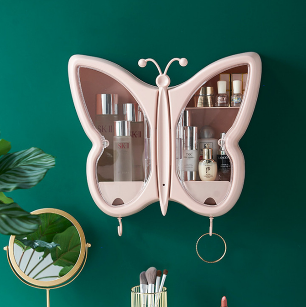Настінний органайзер для косметики у ванну кімнату пластиковий у формі Метелика органайзер для косметики Рожевий (D-20190916