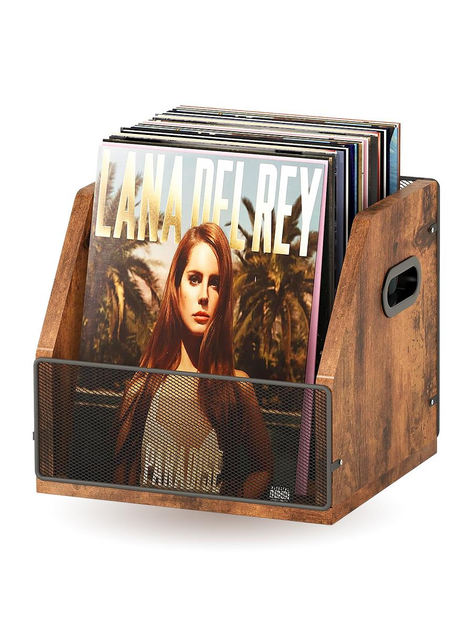 Ящик для вінілових платівок дерево метал 37x29x29 см коричневий (CAV-007)
