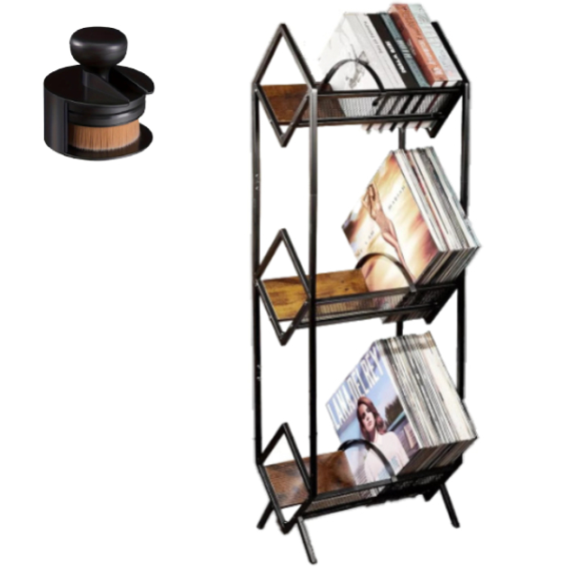 Стелаж підставка трирівнева для зберігання вінілових пластинок та книг 119,4х43,2х28 см SP-100-5 + Антистатична щіточка для