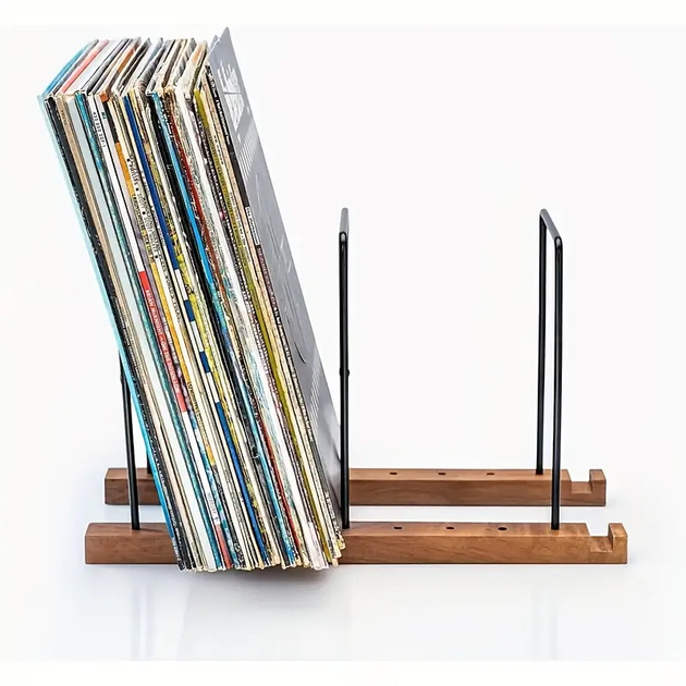 Стелаж підставка для зберігання вінілових пластин 3 секції вміщує 50-80 шт, Дерев'яний