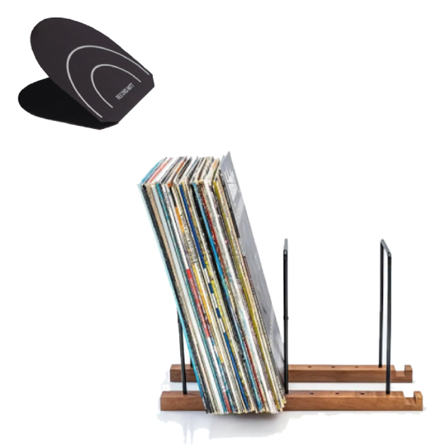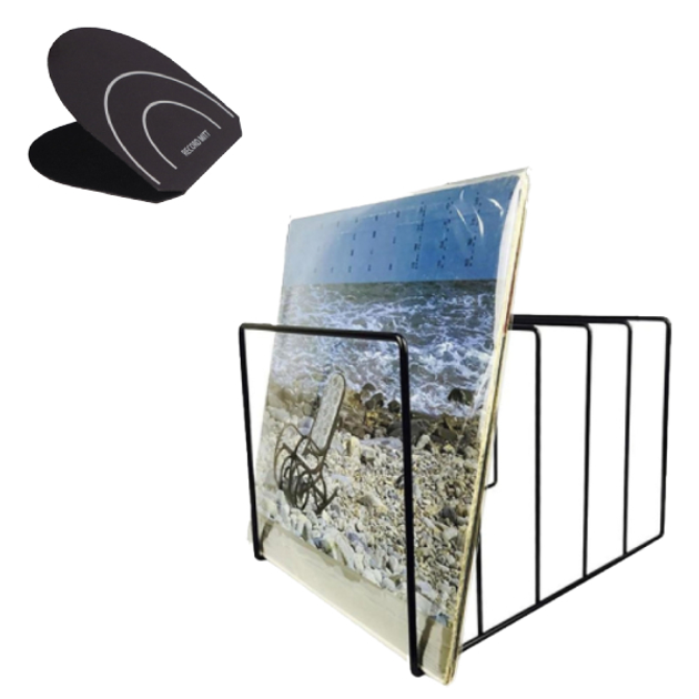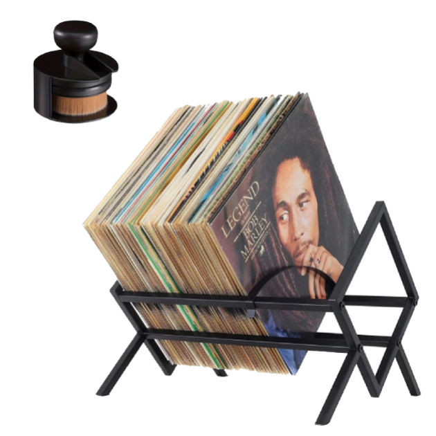 Стелаж підставка для зберігання вінілових пластинок та книг Black SP-100-2 + Антистатична щіточка для догляду за вініловими