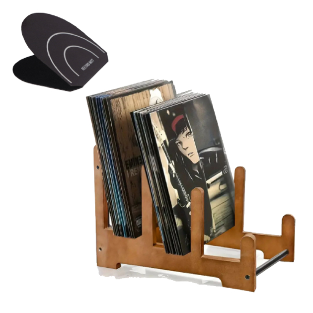 Стелаж підставка для зберігання вінілових платівок 3 секції вміщує 50-80 шт, Дерев'яний + накладка для чищення вінілових пла