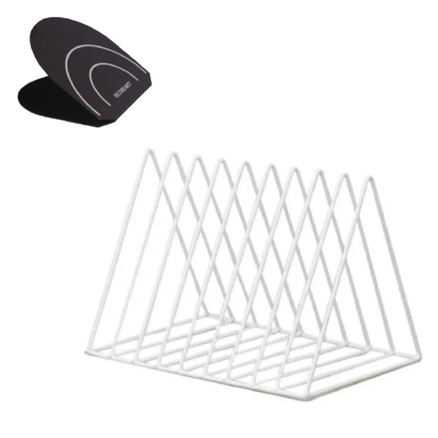 Стелаж підставка для зберігання вінілових платівок трикутник 26x18 White + накладка для чищення вінілових платівок Record Mi