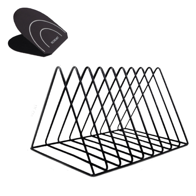 Стелаж підставка для зберігання вінілових платівок трикутник 26x18 Black + накладка для чищення вінілових платівок Record Mi