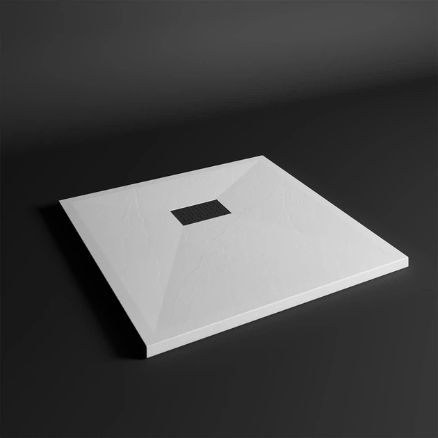 Піддон для душу 90х90 см Білий зі штучного каменю литий мармур композит з мармурової крихти низький квадратний Душовий піддо