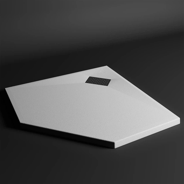 Піддон для душу 100х100 см Білий п'ятикутний зі штучного каменю литий мармур композит з мармурової крихти низький Душовий пі
