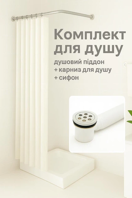 Комплект для душу душовий піддон KO&PO 7006 80х80 см карниз для душу 80х80 см і сифон для піддону (7006-80-2)
