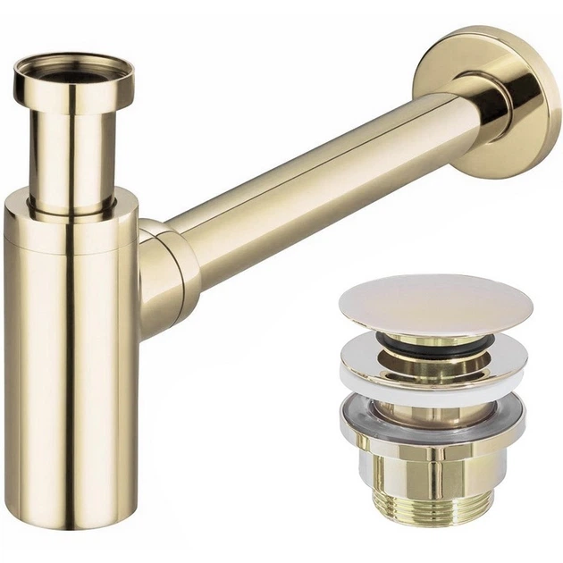Сифон для умивальника Rea універсальний, золотий, із донним клапаном click-clack (REA-A5692)