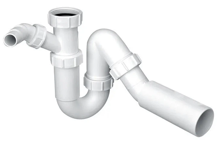 Сифон для кухонної мийки трубчастий 1.1/2”х50 мм з підключенням до стиральної або посудомийної машини, без зливу