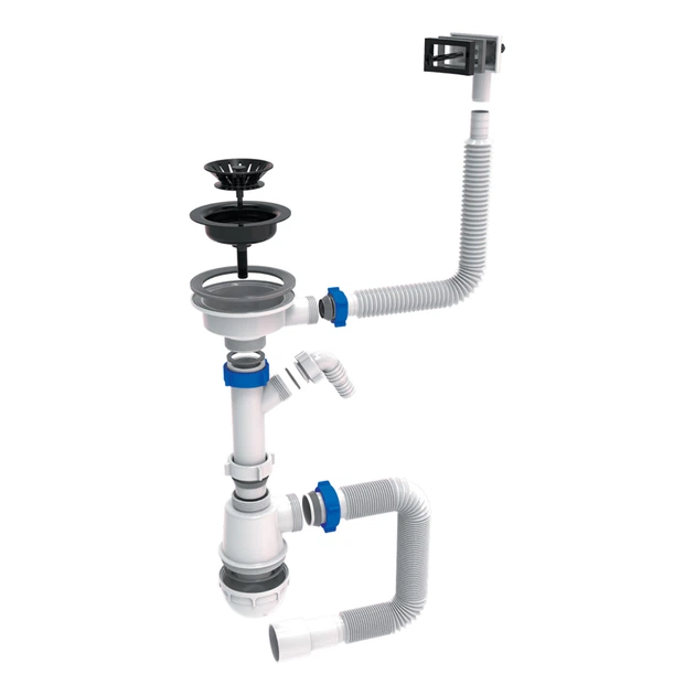 Сифон для кухонної мийки SoloPlast К-1150, відвід під пральну машину, корок-сітка