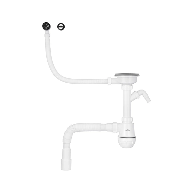 Сифон для кухонної мийки Kroner KRP KS02-1BLK 3 1/2"х40/50 мм з відведенням для стиральної машини