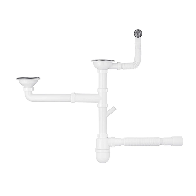 Сифон для кухонної мийки ROZZY JENORI впуск 110 мм з відведенням під пральну машинку білий RSK110800