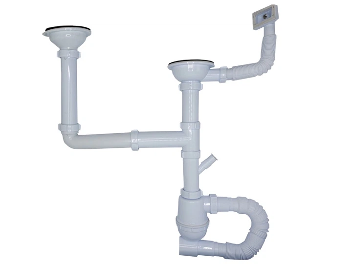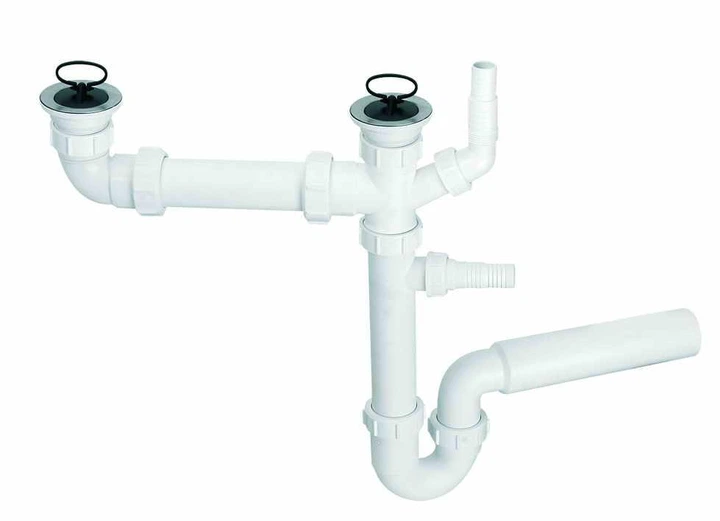 Сифон для кухонної мийки підвійний з підключенням до стиральної машини HC7+DO2-W