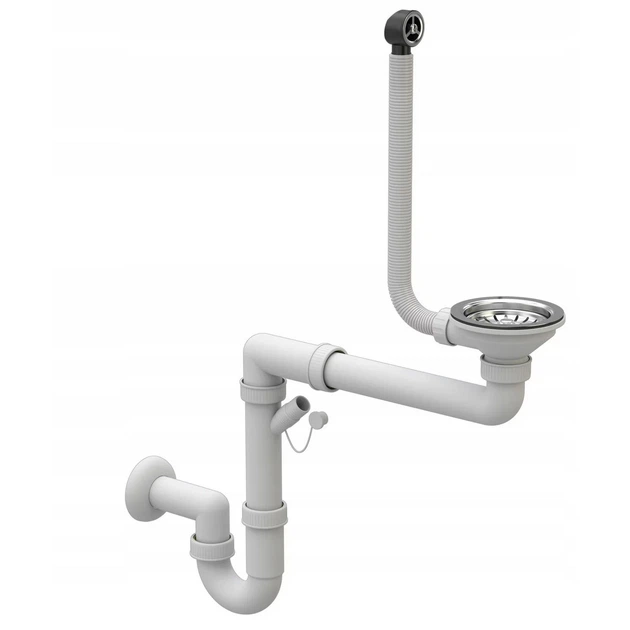 Сифон для кухонної мийки GRANITAN впуск 115 мм випуск горизонтальний з відведенням під пральну машинку хром 1M11CH