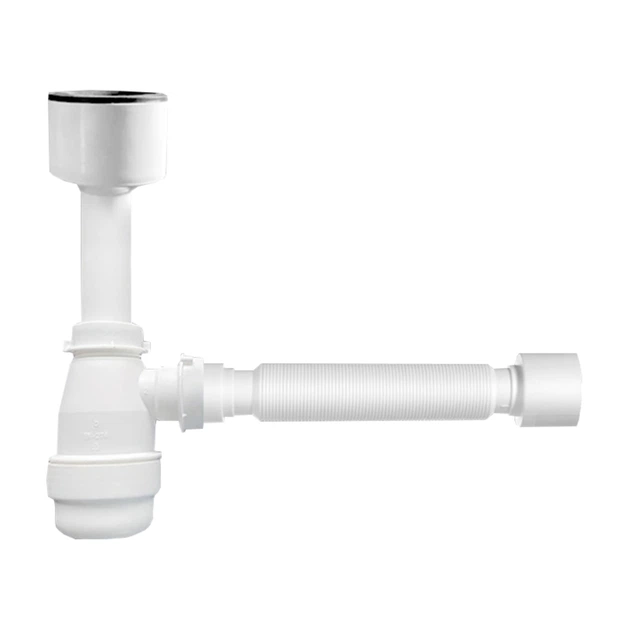 Сифон для мийки ANI-plast C1315, 1 1/4" х 40 з відведенням для пральної машини, з гнучкою трубою 40 x 40/50