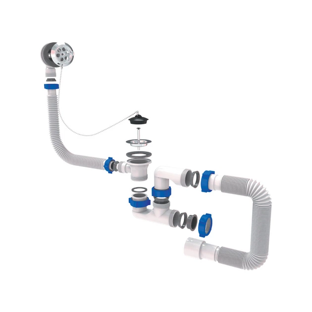 Сифон для ванни з пробкою на ланцюжку та гнучким відведенням 40/50мм TAU (9843620) 4966035
