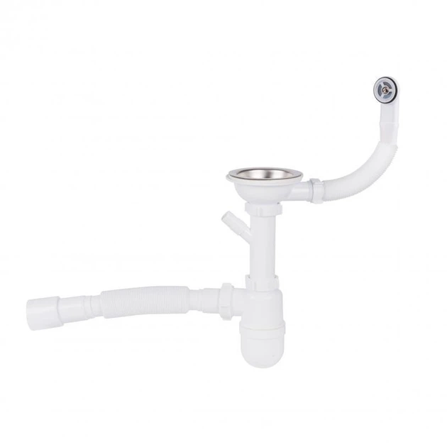 Сифон для кухонної мийки Lidz (WHI) 60 08 E001 01 ECO з круглим переливом (вихід 50 мм)