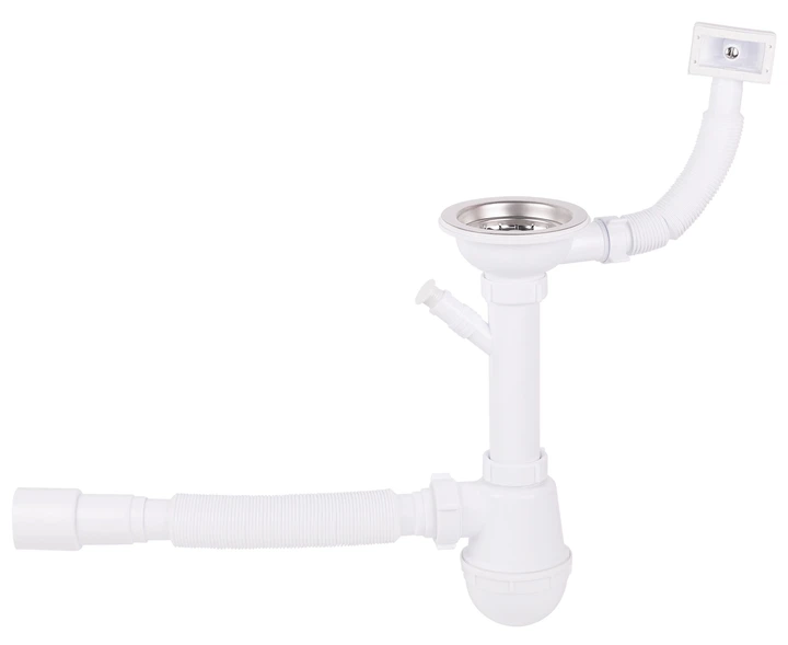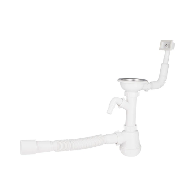 Сифон для кухонної мийки Lidz (WHI) 60 05 M002 01 EURO з відводом для пральної машини (вихід 50 мм)