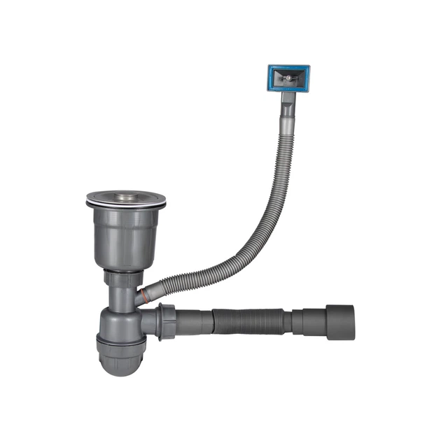 Сифон для кухні Mixxus SK-07-B 3 1/2"x40 з нерж.сіткою, відведенням для стиральної машини, гнутким коло. переливом (MI8199)