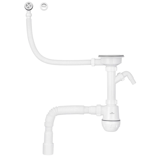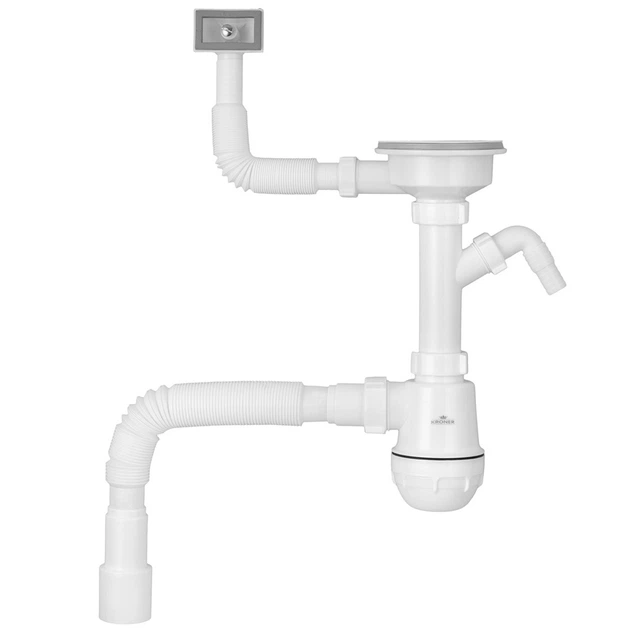 Сифон для кухонної мийки KRONER KS02R-1WHI впуск 110 мм з відведенням під пральну машинку білий CV034318