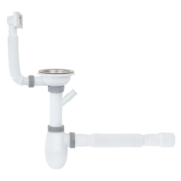 Сифон для кухонної мийки SoloPlast К-1150, відвід під пральну машину, корок-сітка