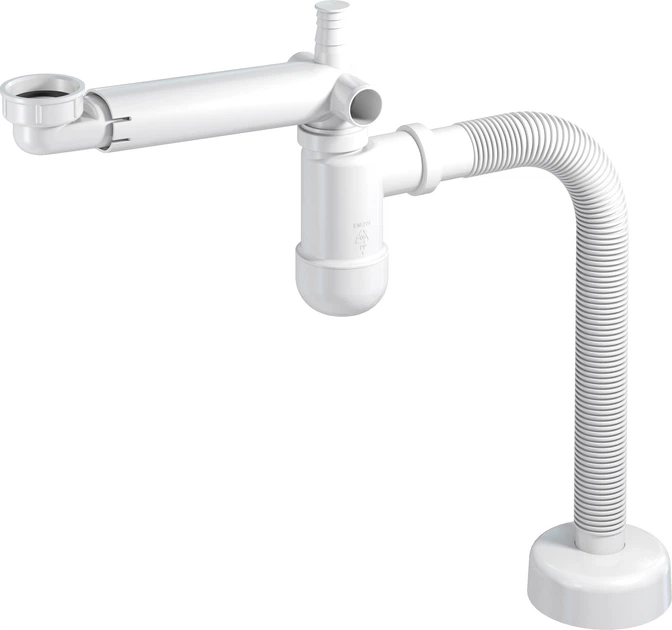 Сифон для кухонної мийки WIRQUIN впуск 1 1/2" випуск горизонтальний з відведенням під пральну машинку білий 9542820