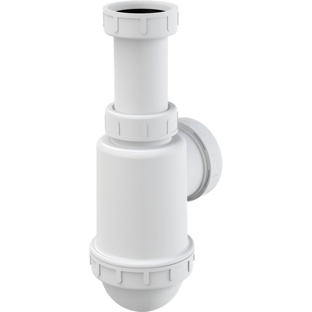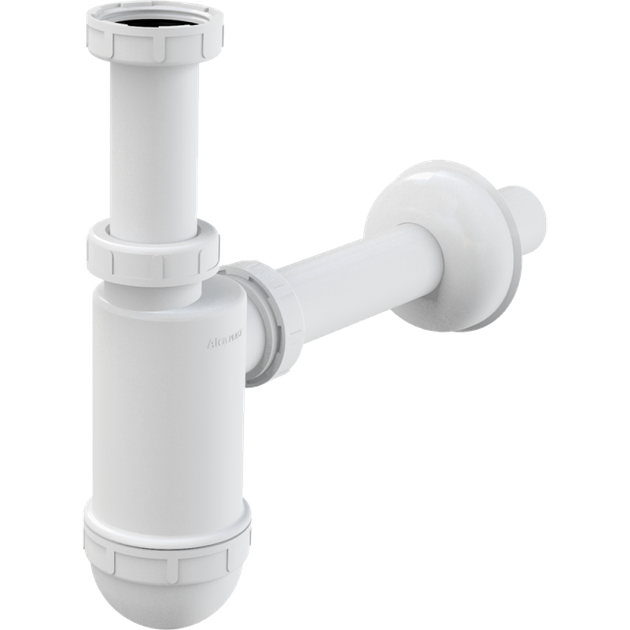 Сифон для умивальнику ALCAPLAST колбовий пластик впуск 1 1/4" випуск горизонтальний білий А430