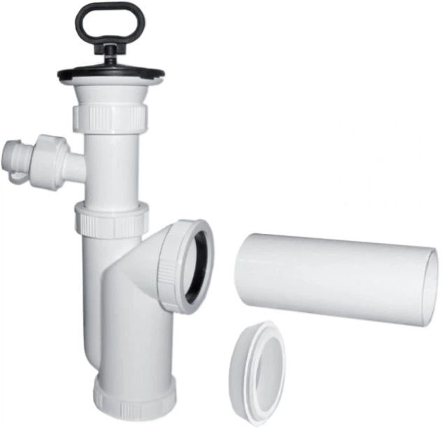 Сифон для кухонної мийки PLAST BRNO колбовий 40/50 мм з пробкою з під'єднанням до пральної машини (ED10450)
