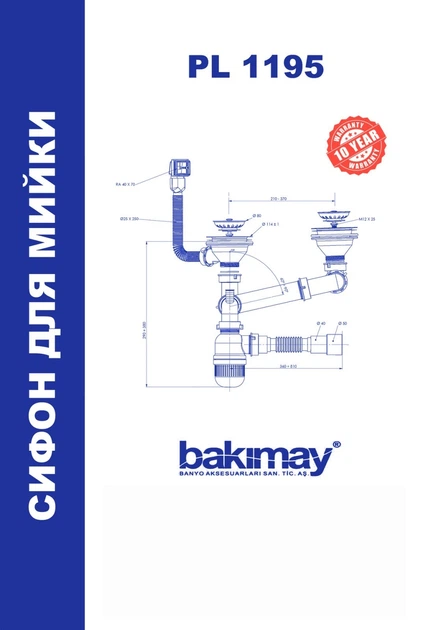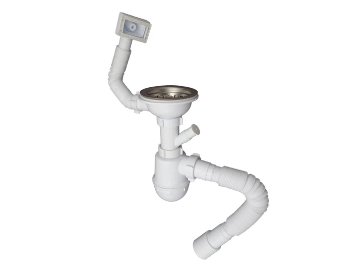 Сифон для мийки з переливом Bakimay PL1195 подвійний 3 1/2"